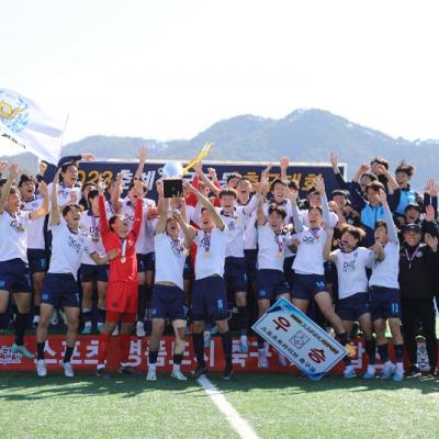 2025 U리그1 왕중왕전 정상에 오른 단국대의 우승 세레머니 장면.단국대가 연장 접전 끝에 울산대를 누르고 통산 3번째 정상과 함께 왕중왕전 최다 우승팀에 등극했다. 박종관 감독이 이끄는 단국대는 20일 단국대 천안캠퍼스운동장에서 열린 2025 U리그1 왕중왕전 결승전에서 서효원 감독의 울산대를 3-2로 꺾었다. 단국대는 0-1로 끌려가...