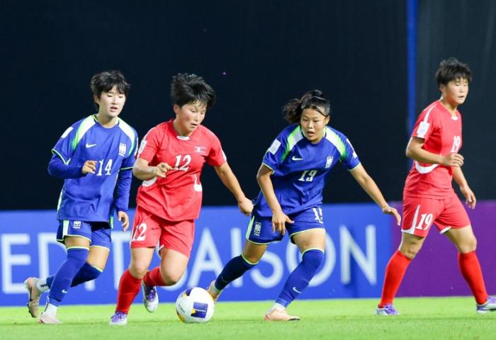 [사진=대한축구협회.북한과의 조별리그 최종전 당시 경기 모습.]여자 U-20 대표팀이 태국에서 열리고 있는 아시아축구연맹(AFC) 20세 이하(U-20) 여자 아시안컵 대회를 4강에서 마무리하게 됐다. 박윤정 감독이 이끄는 여자 U-20 대표팀은 15일(이하 한국시간) 태국 빠툼타니 스타디움에서 열린 2026 AFC U-20 여자 아시안컵 4강전에서 북한에 0-3으로 졌다. 이번 대회는 3,4위전을 따로 치르...