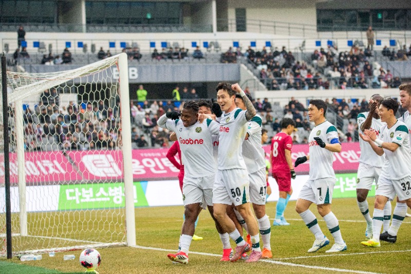 김포는 14일 토요일 오후 4시 30분 하나은행 K리그2 2026 3라운드 경기에서 디자우마, 박동진, 루안의 골로 신생팀 용인을 3대 1로 격파했다.
