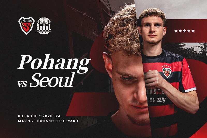 포항스틸러스는 오는 18일 오후 7시 30분 포항스틸야드에서 FC서울과 하나은행 K리그1 2026 4라운드 맞대결을 펼친다. 지난 15일 열린 홈 개막전에서 포항은 1-1 무승부를 기록했다. 후반 시작과 동시에 터진 이호재의 동점골로 승점 1점을 챙겼다. 첫 승의 아쉬움을 뒤로한 포항은 서울을 상대로 홈에서 시즌 첫 승을 노린다. 3일 만에 다시 열리는 홈경기인 만큼 반드시 승리를 가져오겠다는 각오다.