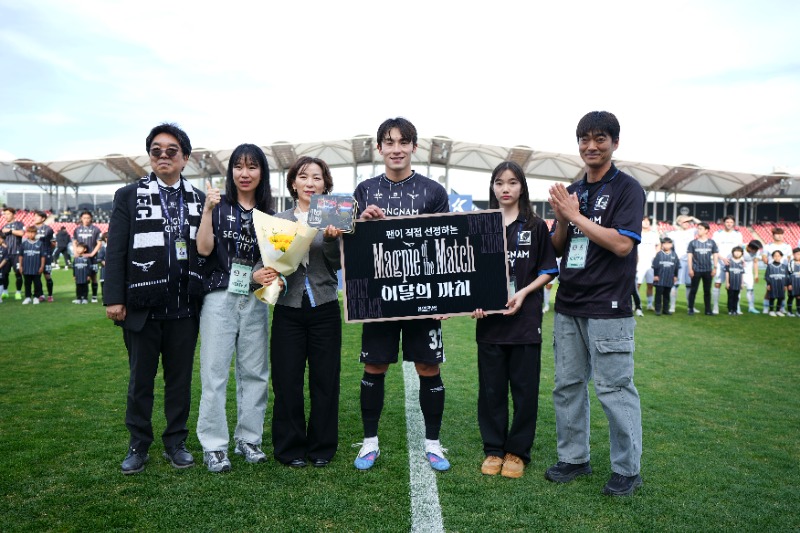 성남FC는 지난 안산그리너스와의 ‘하나은행 K리그2 2026’ 7라운드 홈경기에 앞서 3월 ‘이달의 까치’ 시상식을 진행했다.