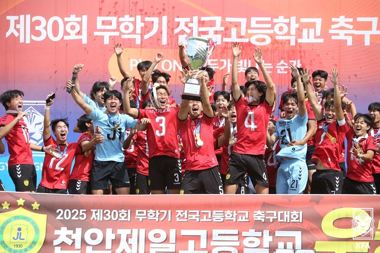 [무학기 정상에 오른 천안제일고의 우승 세레머니 장면]
