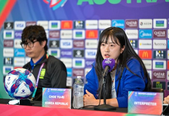 [사진=대한축구협회.우즈벡과의 여자 아시안컵 8강전을 앞두고 열린 공식 기자회견에 참석한 최유리. 왼쪽은 여자 대표팀을 이끌고 있는 신상우 감독.]우즈베키스탄과의 아시아축구연맹(AFC) 여자 아시안컵 8강전을 앞두고 여자축구 국가대표팀 베테랑 공격수 최유리(32, 수원FC위민)는 방심을 경계하며 집중하겠다는 뜻을 드러냈다. 신상우 감독이 이끄는 여자 대표팀(FIFA랭킹 21위)은 14일 오후 6시(이하 한국시...
