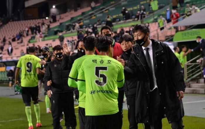전북 현대는 2일 전주월드컵경기장에서 열린 제주 유나이티드와 하나원큐 K리그 1 2021 13라운드 맞대결서 1-1 무승부를 기록했다.이날 승점 1점을 추가한 전북은 8승 5무 승점 29점으로 단독 선두를 이어갔다. 제주는 4승 8무 1패 승점 20점을 기록했다.전북 김상식 감독은 "선수들이 최선을 다했