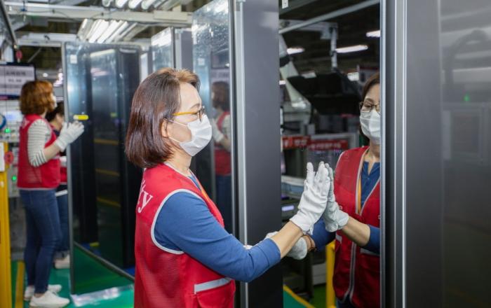 LG전자 직원들이 25일 경남 창원사업장에서 최대 6벌의 옷을 한 번에 관리할 수 있는 대용량 의류관리기 '트롬 스타일러 플러스'를 생산하고 있다. 대표적인 스팀 가전인 트롬 스타일러가 필수가전으로 자리잡으면서 가족들의 옷을 한 번에 관리할 수 있는 대용량 제품이 인기다. 실제로 올 들어 최근까지 트롬