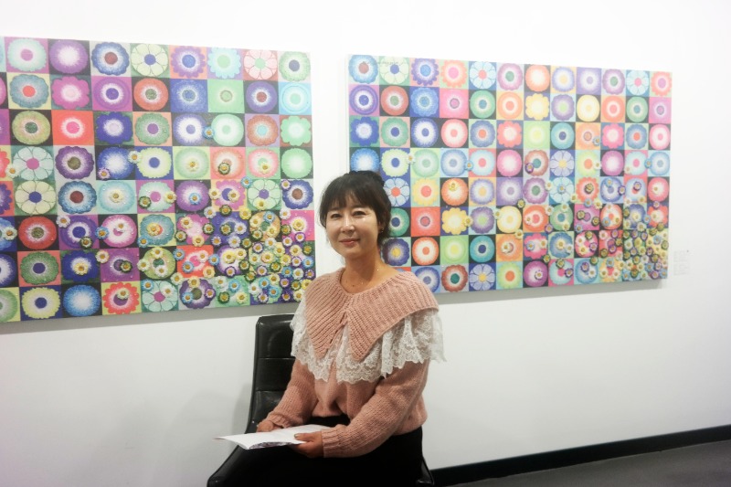 소금결정체에서 발산되는 빛과 색깔을 영감으로 화폭에 담은 다양한 작품은 보는 이들이 마음이 편안해지고 행복감을 느낄 수 있는 작품이길 바란다고 했다.
