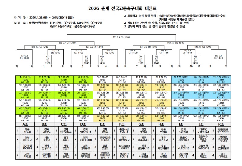 경남 합천군(군수 김윤철)이 오는 1월 26일부터 2월 9일까지 15일간 ‘2026 춘계 전국고등축구대회’를 개최하며 대한민국 축구 미래 주역들의 화려한 개막을 알린다.