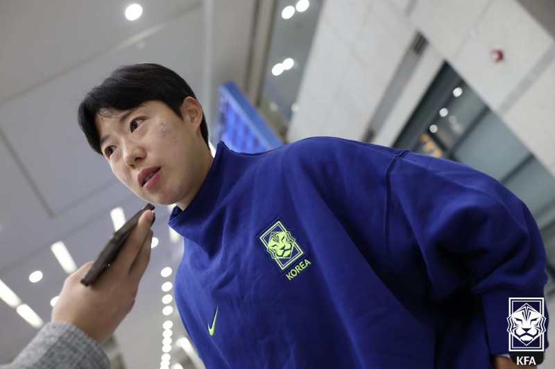 [사진=대한축구협회.입국 후 인터뷰하는 고유진 선수.]
