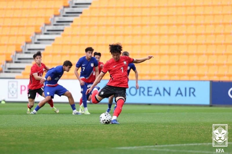 [사진=대한축구협회.31일 미국전 경기장면, 사진 속 선수는 김명준]