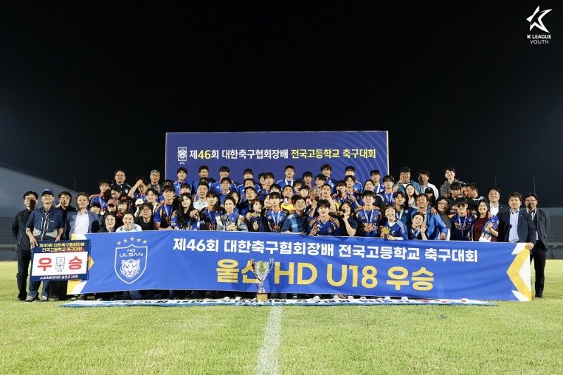 [사진=울산 HD FC. 2025년 제46회 대한축구협회장배 전국고등학교 축구대회’에서 우승컵을 들어올린 울산 HD U18.]